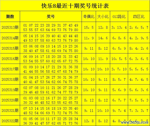 福彩称心8第2025322期开奖回来:01 05 06 10 11 17 22 25 28 34 36 39 41 47 57 62 65 71 73 76,其中奖号大小比为8:12,012路比为4:8:8,和值为726,跨度为75,奇偶比为12:8。